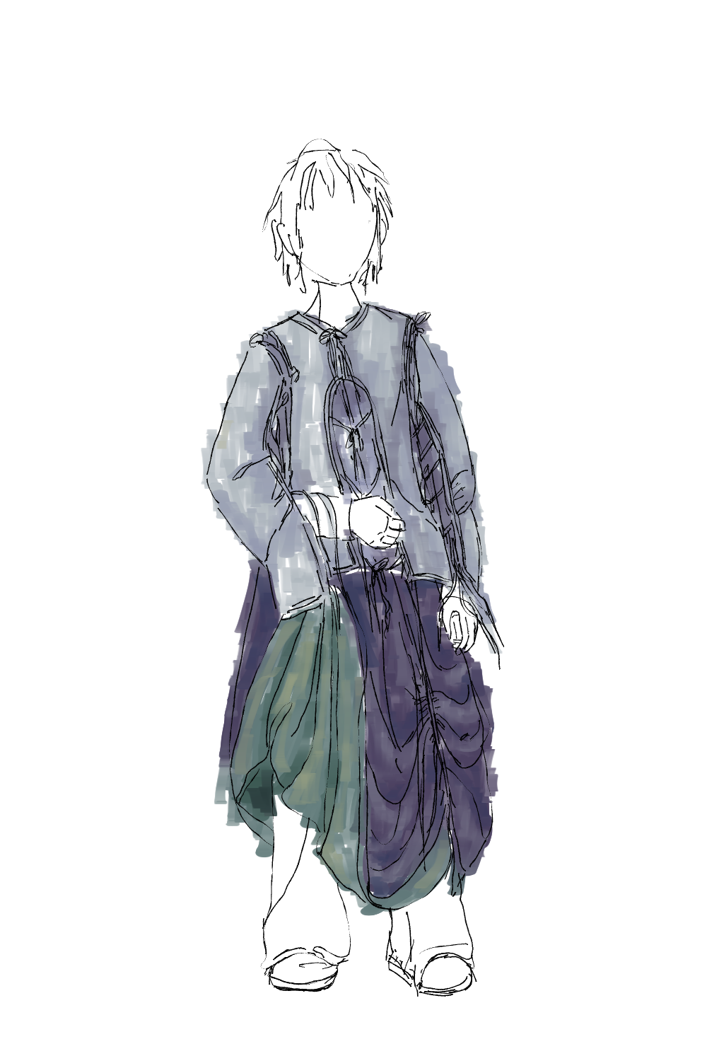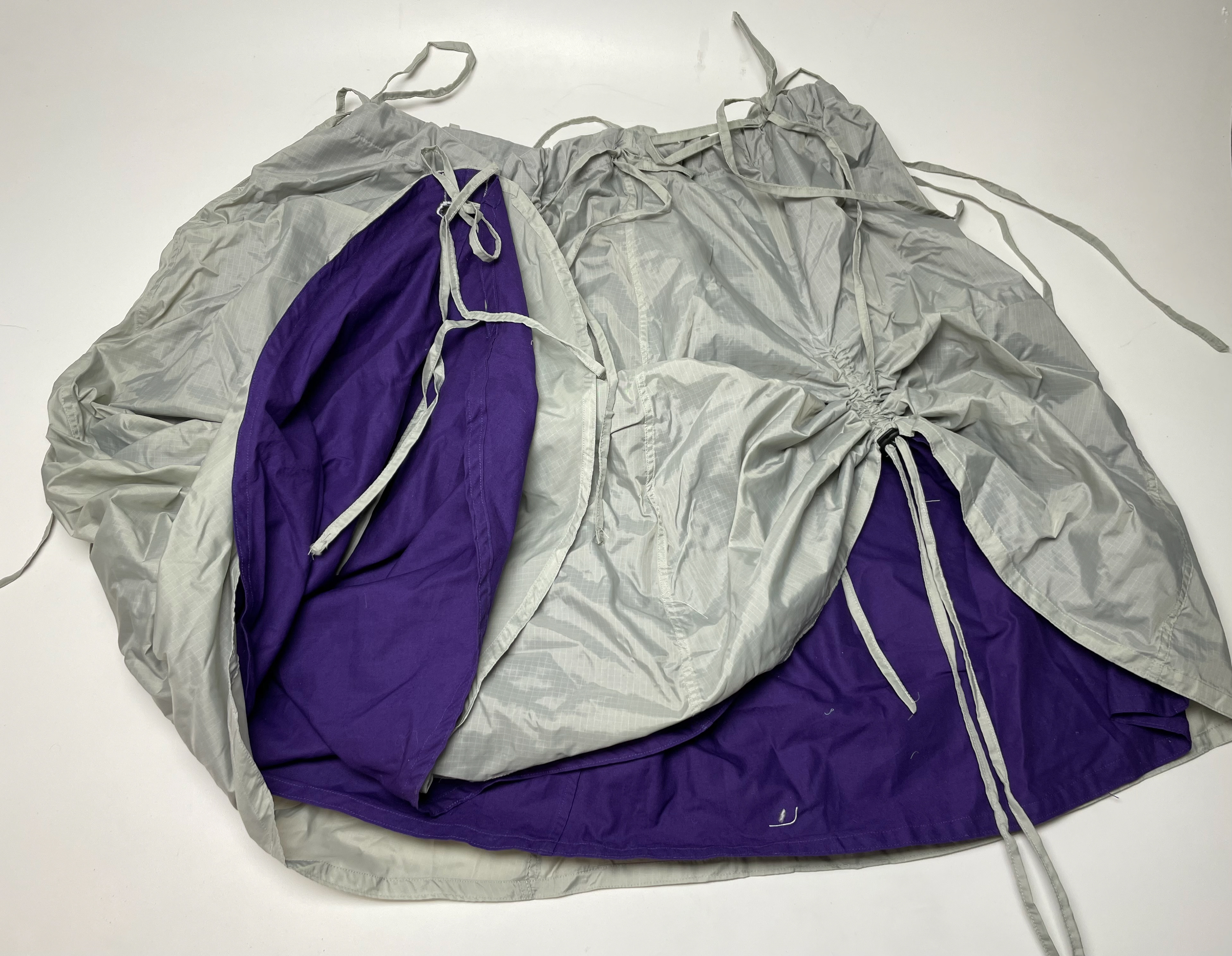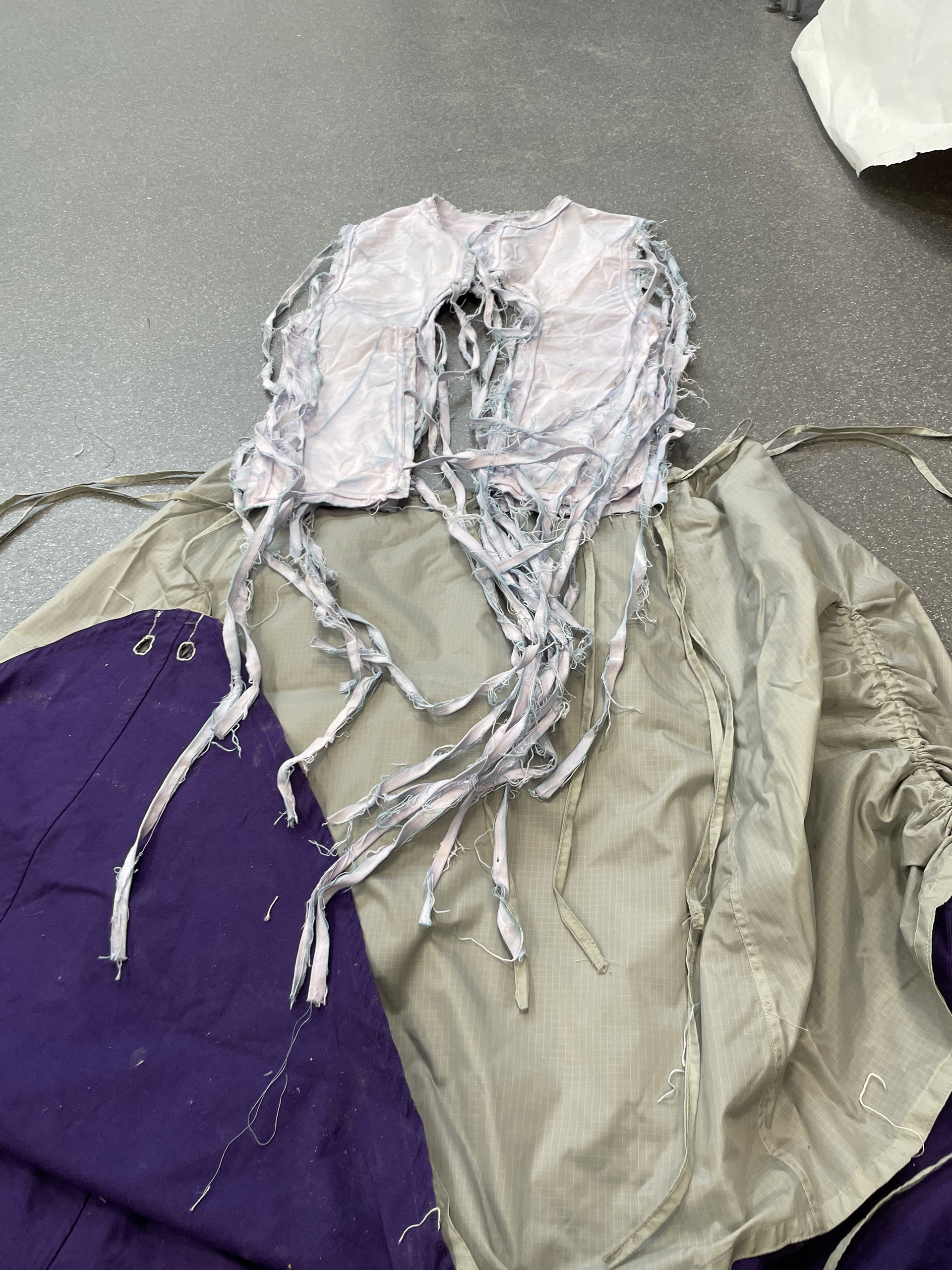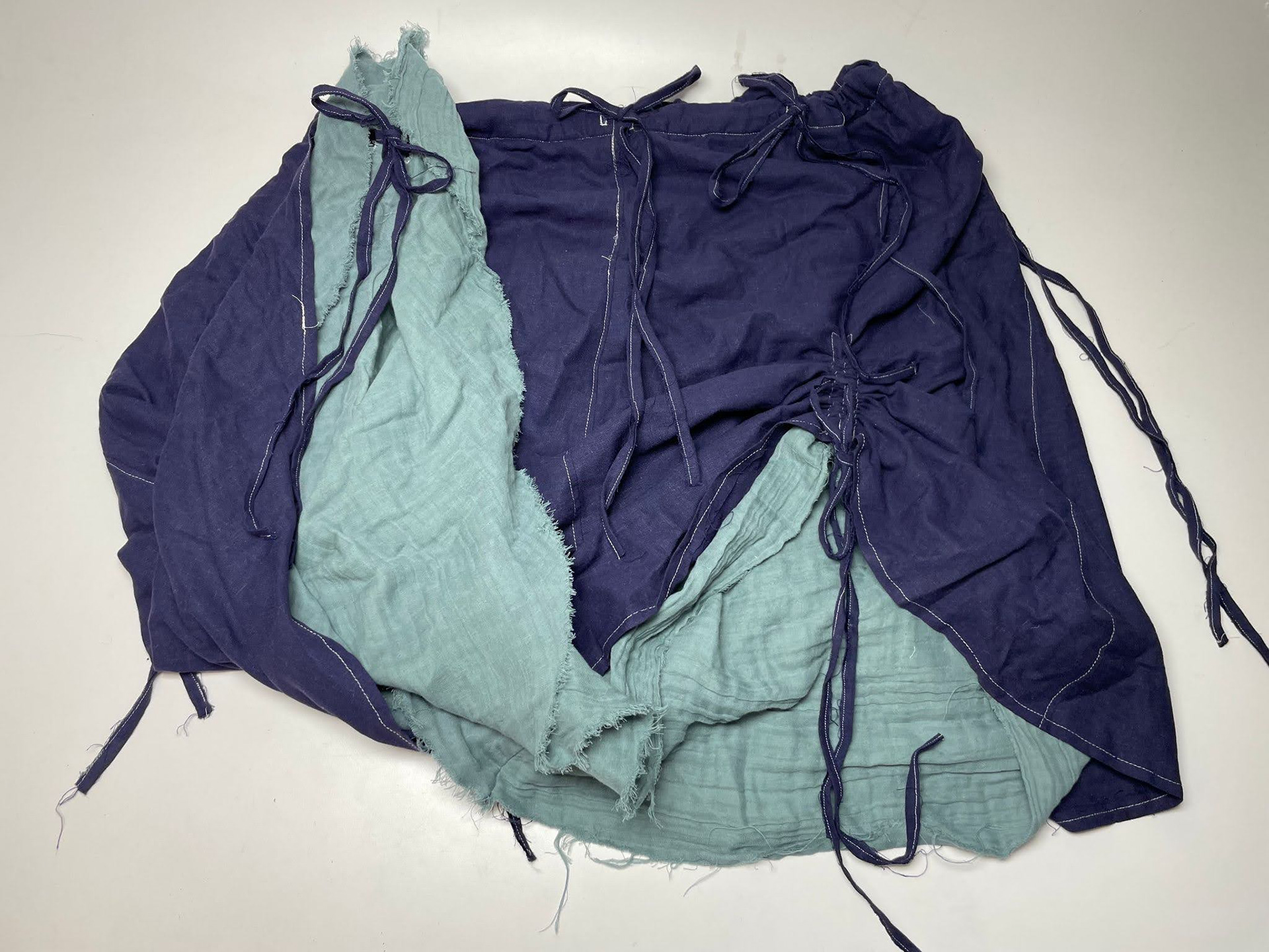 The purple and grey skirt was the original, but after dying the jacket, it became clear that the materials and colors clashed too much to work and I was forced to remake the pattern with different material
