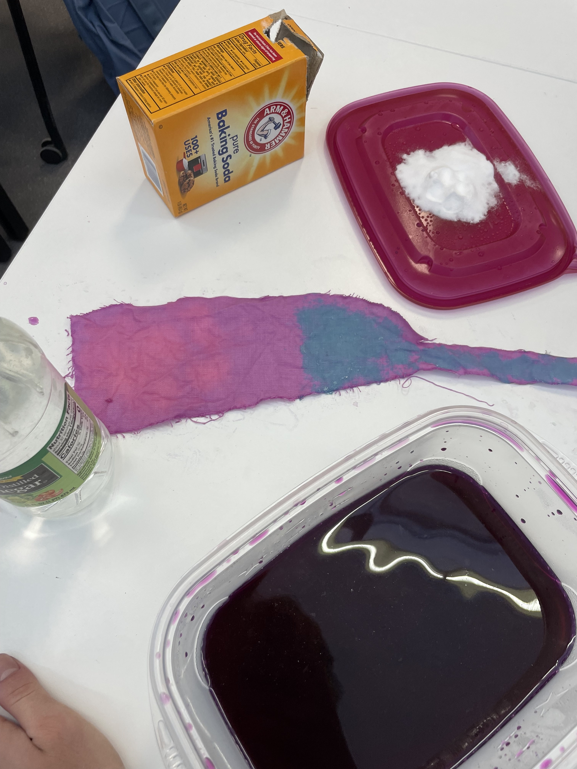 I managed to dye the jacket using natural cabbage dye, adjusting the color with baking soda and vinegar to get the desired shade.