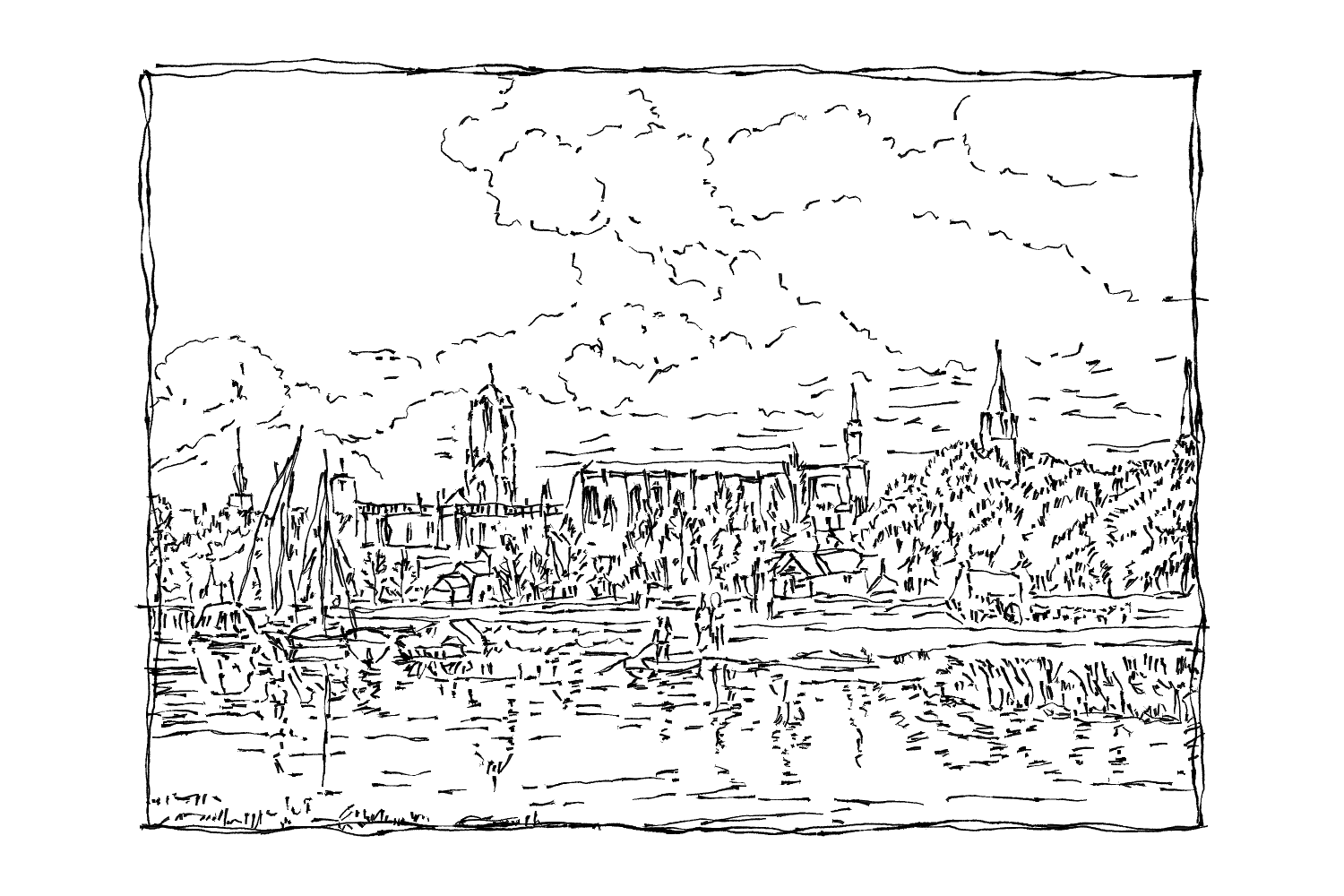 I was really inspired by the landscape works of a painter from the late 1700s named Joseph Mallord William Turner and decided to use those as the base for the drawings I would do for the tags.
